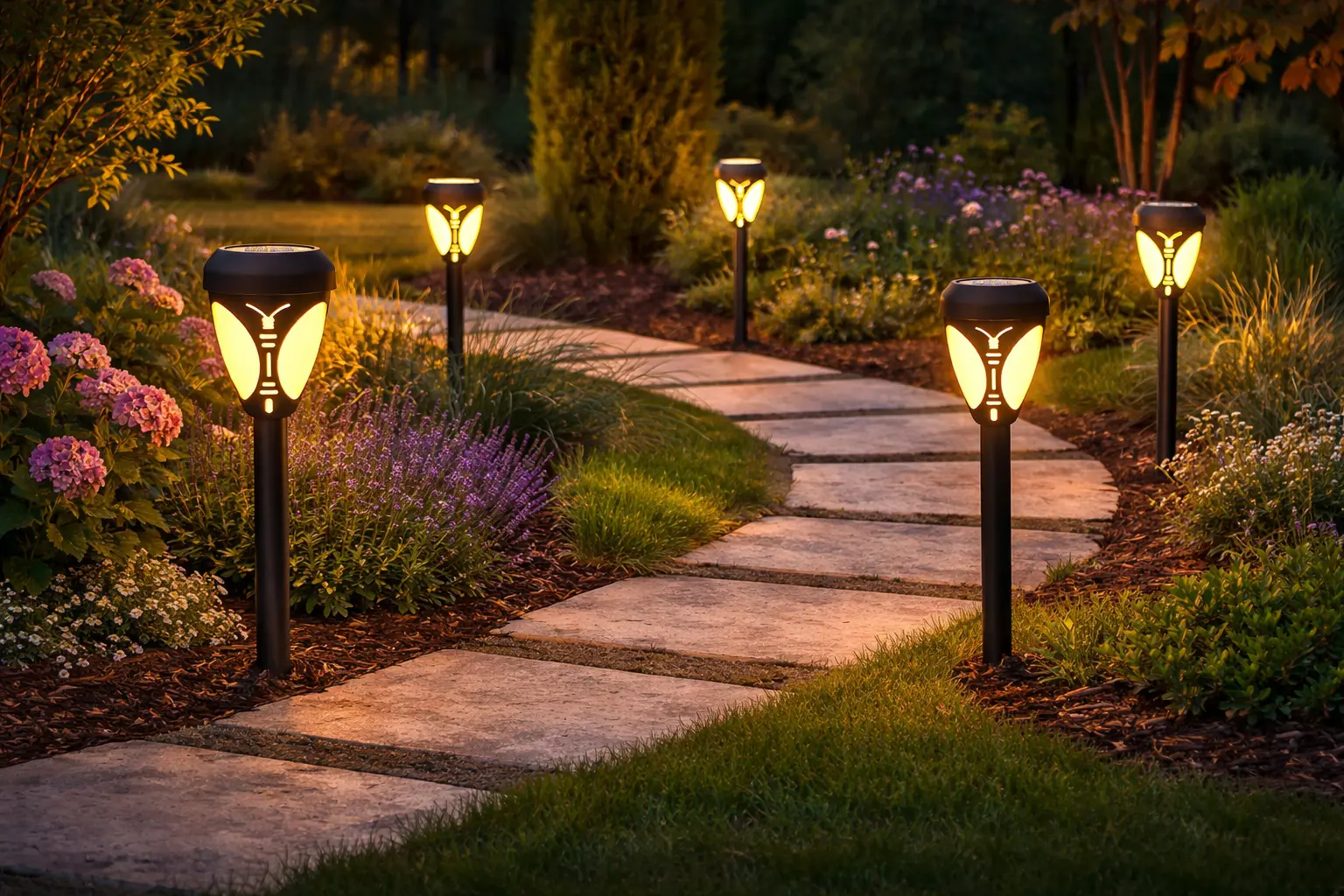 Za kompletno osvetljenje vrta, kombinujte baštenske lampe sa solarnim lampama za staze i solarnim lampama za terasu koje će osvetliti prostor za sedenje.